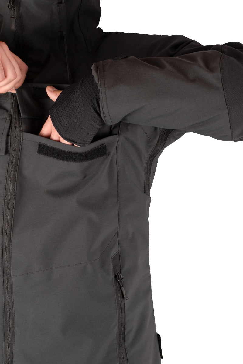 Der obere Bereich der Jacke sowie die Ärmel bestehen aus einem speziellen, dreilagigen Cordura-Ballistikgewebe – reißfest, schnittfest und abriebfest – für dauerhafte Nutzung unter den härtesten Bedingungen und auf anspruchsvollstem Terrain.